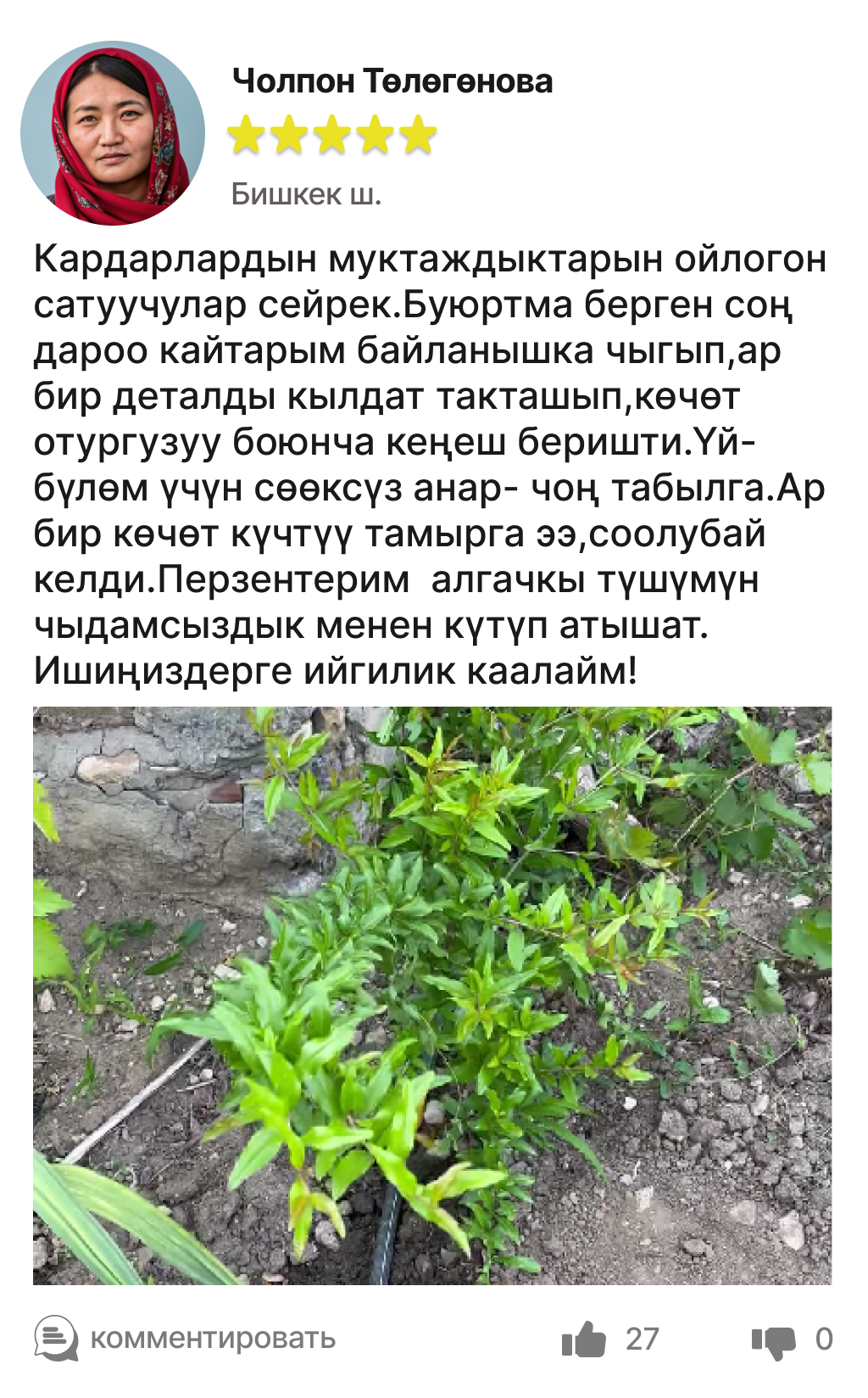 Биз бакубат көчөттөрдү гана жеткиребиз.