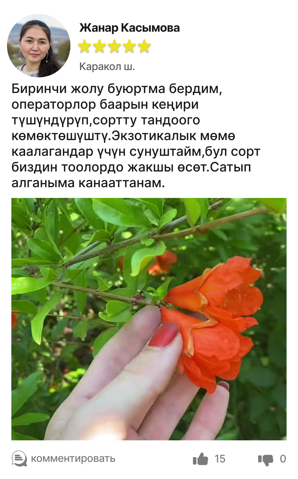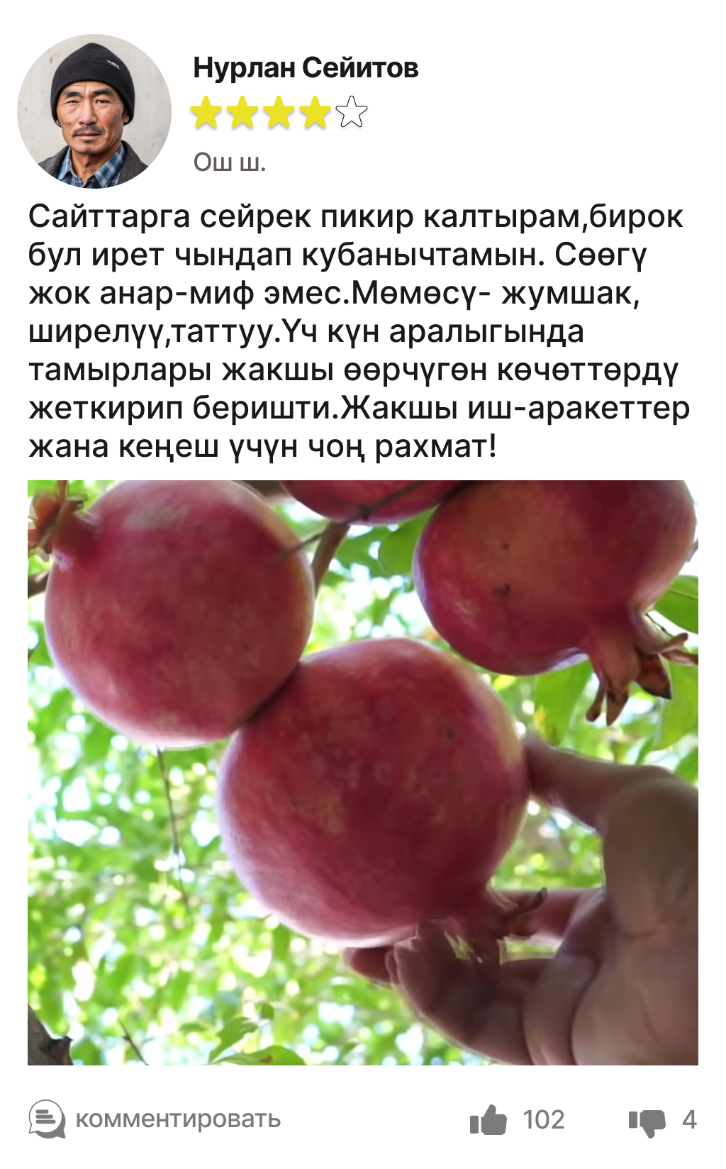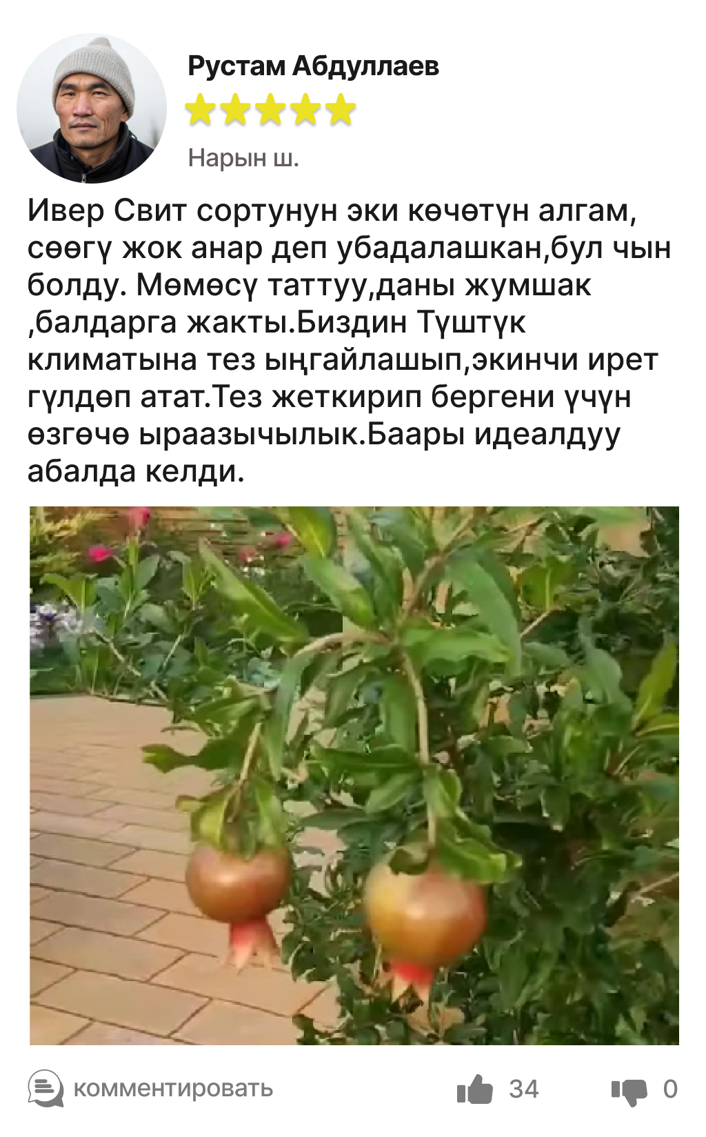 Сөөгү жок анардын мөмөсү -ширелүү,жумшак,чыныгы даам