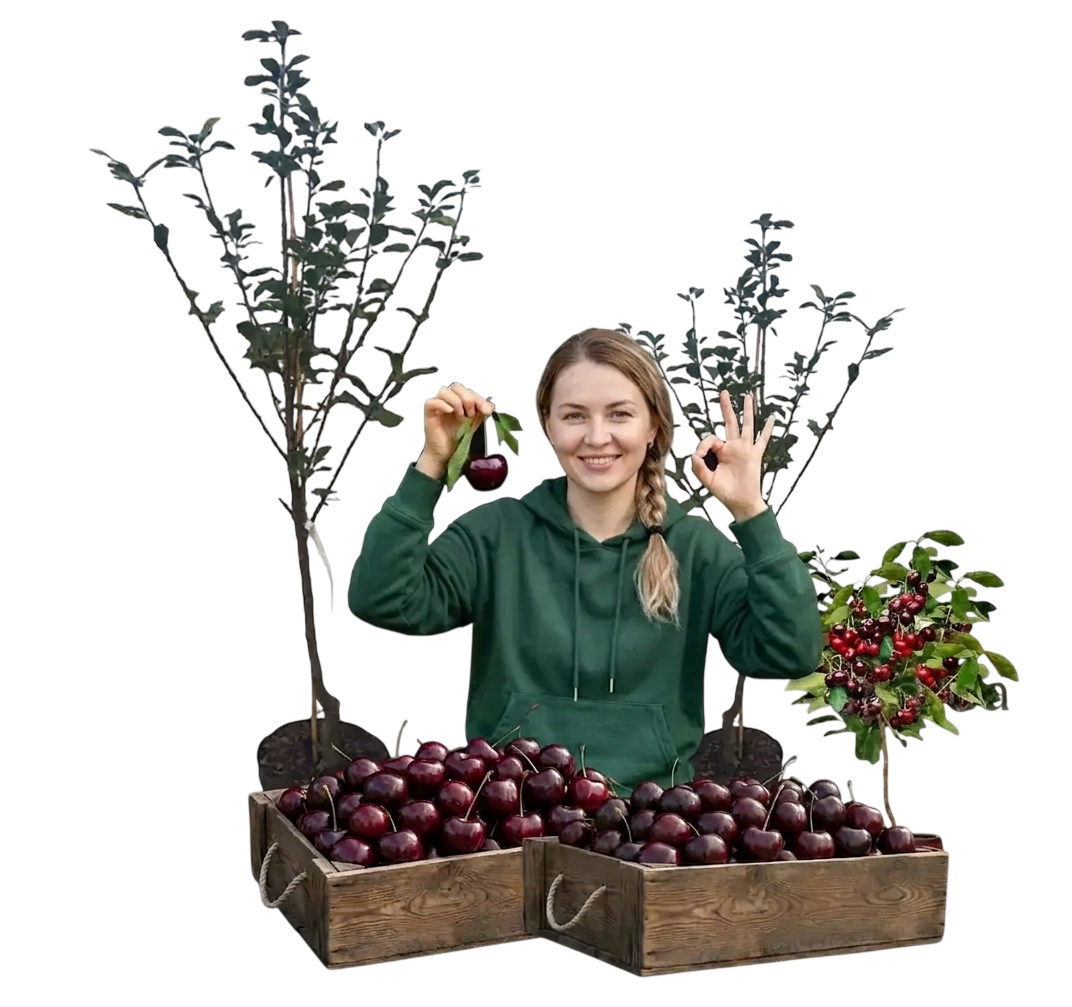 Саженцы черешни сорта Канадский Гигант — высокоурожайный сорт, который начинает активно плодоносить уже в первый сезоны. Масса одного плода достигает 20–30 г, а урожайность может составлять до 50 кг с одного дерева.