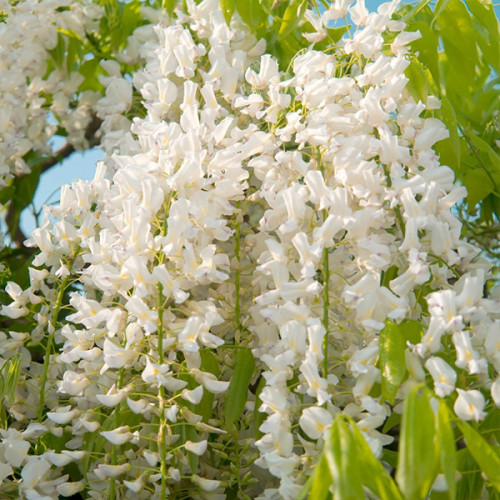 Элегантная многолетняя лиана японской селекции, относящаяся к семейству Бобовые. Ценится за чисто-белое цветение и длинные соцветия. Часто используется в классическом и минималистичном ландшафте.